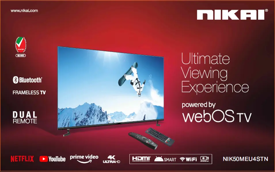 شاشة نيكاي 50 بوصة سمارت 4K نظام ويب اس NIK50MEU4STN