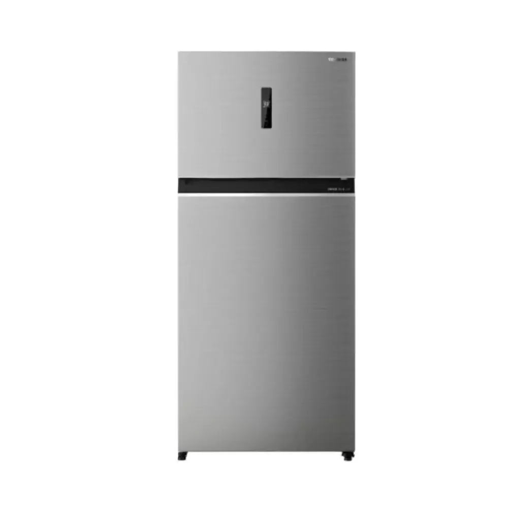 ثلاجة توشيبا بابين 19.6 قدم مكعب بتصميم أنيق باللون الفضي ومصنوعة من ستانلس ستيل لتوفير متانة وجودة عالية.