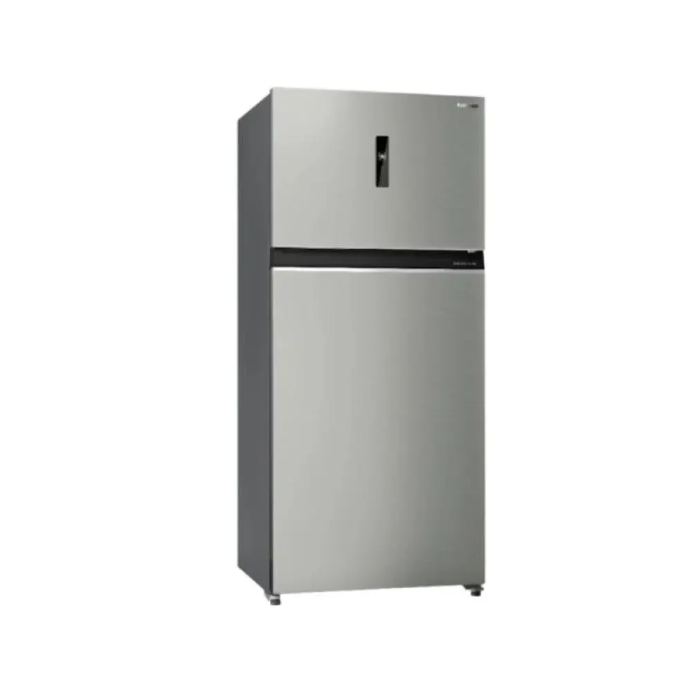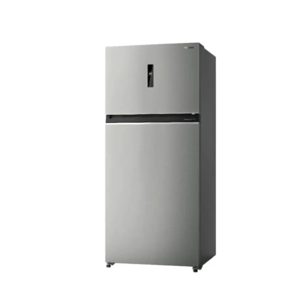ثلاجة توشيبا بابين 19.6 قدم مكعب بتصميم أنيق باللون الفضي ومصنوعة من ستانلس ستيل لتوفير متانة وجودة عالية.