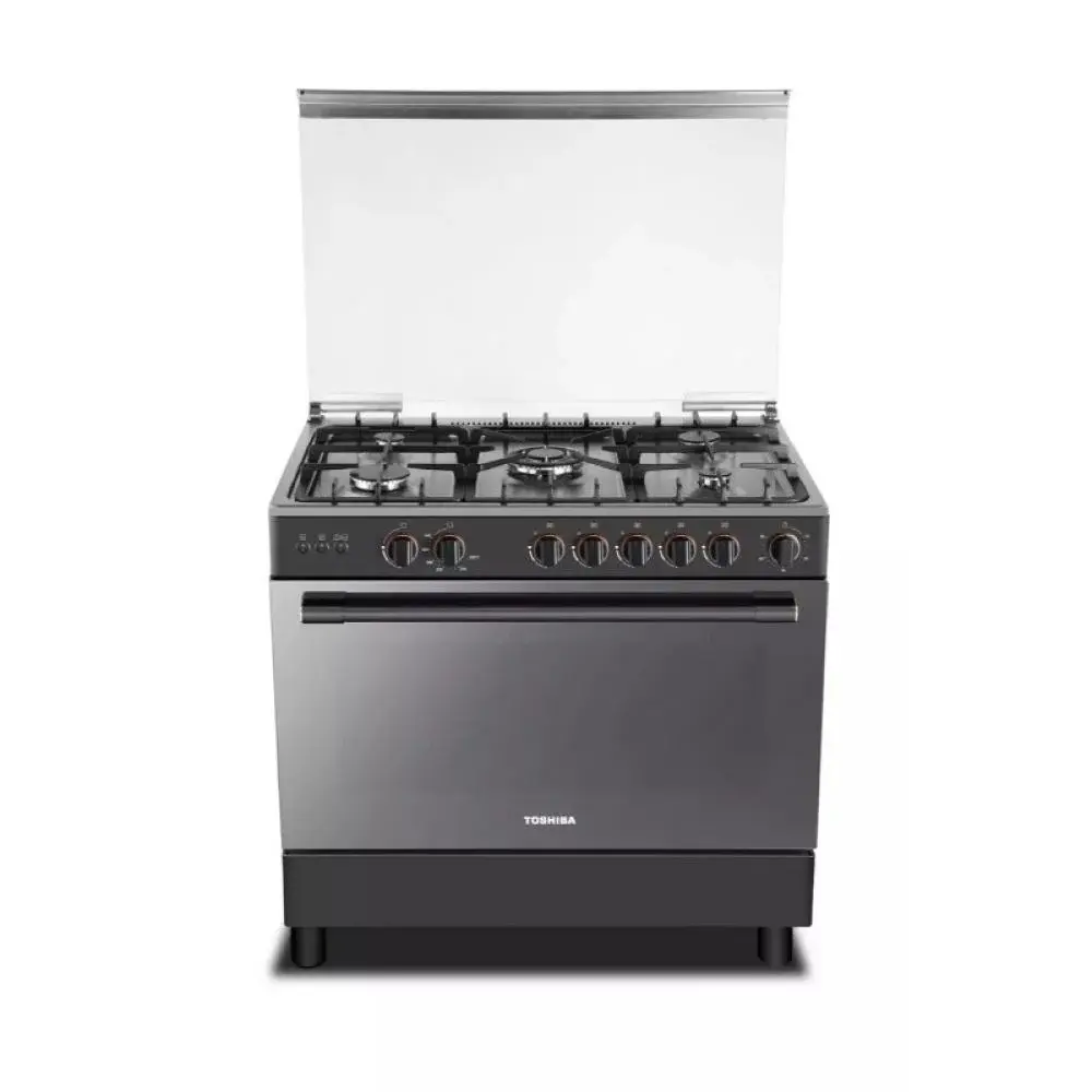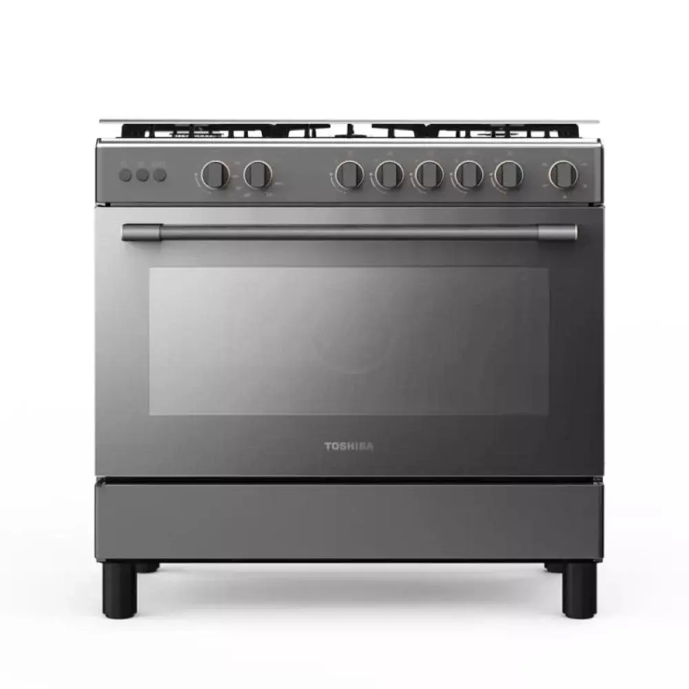 فرن توشيبا 5 عيون غاز 60x90 سم مع شواية ومروحة - ستيل - RLA1-90MG5GE(GMR)-SA